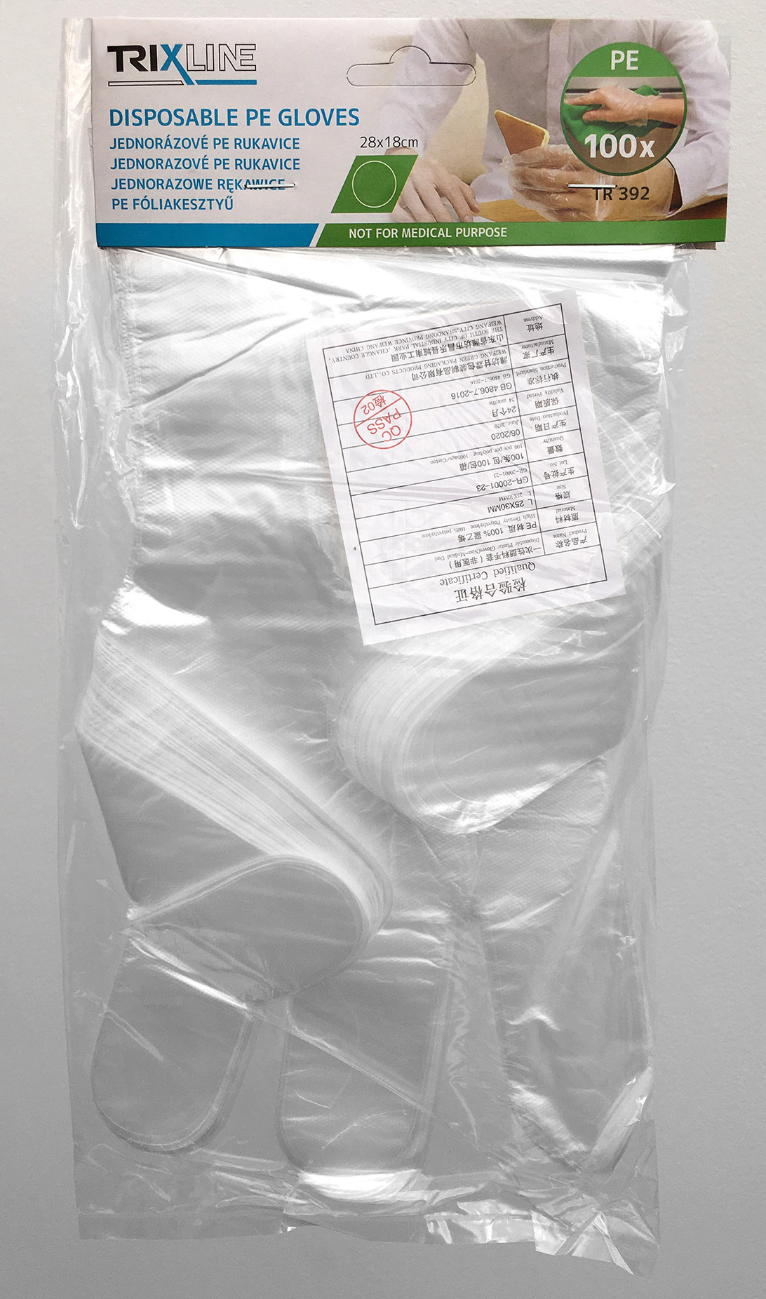 Bezpečnostné informácie (PDF)Jednorazové PE rukavice Trixline TR 392 veľ. L